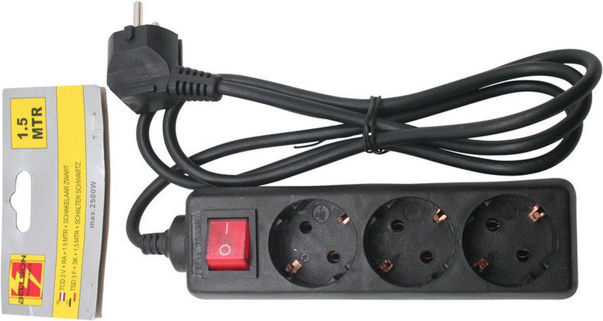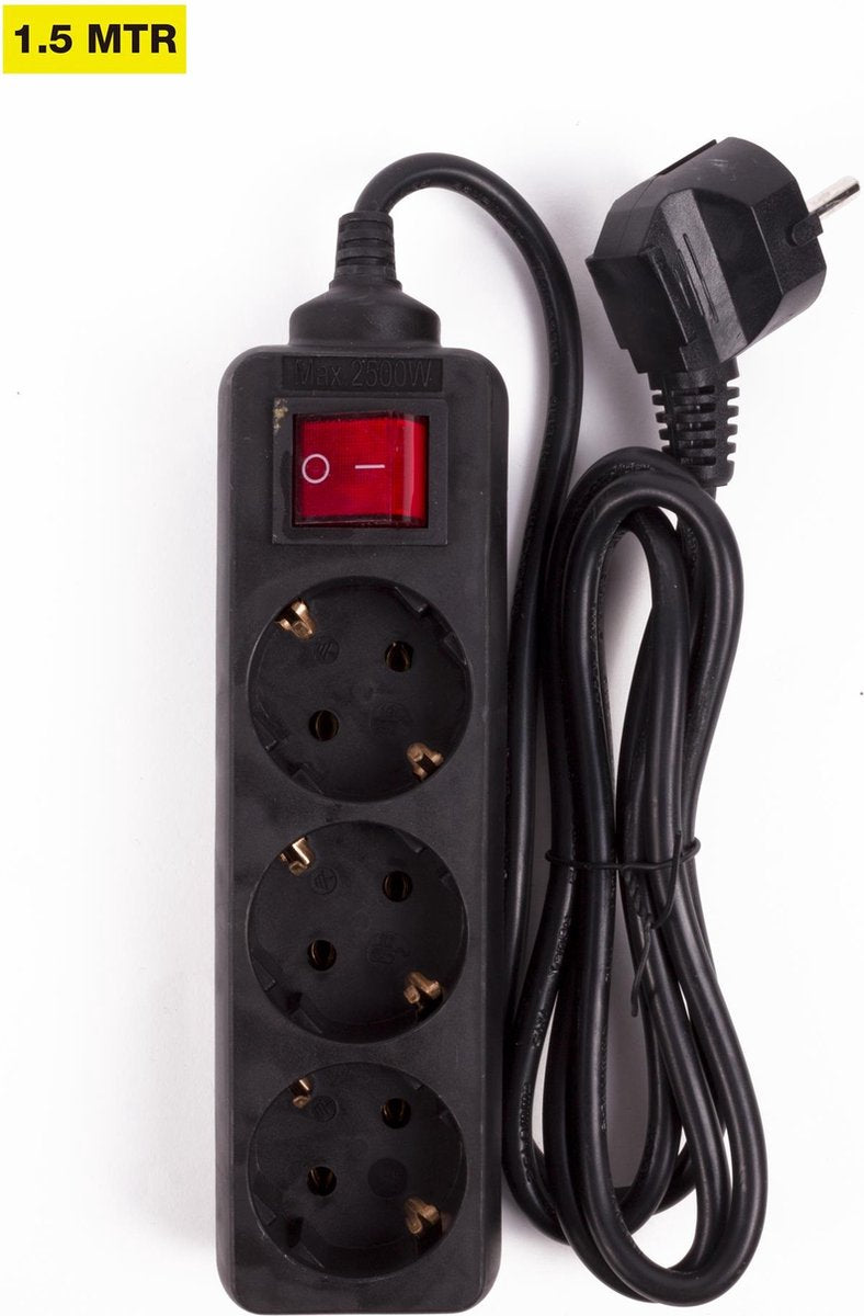 Stekkerdoos - 6 Voudig - 3 Voudig - Randaarde - Schakelaar - 1 meter - 3 x 1 mm2 - Wit